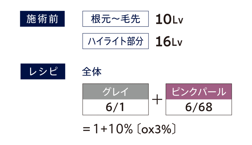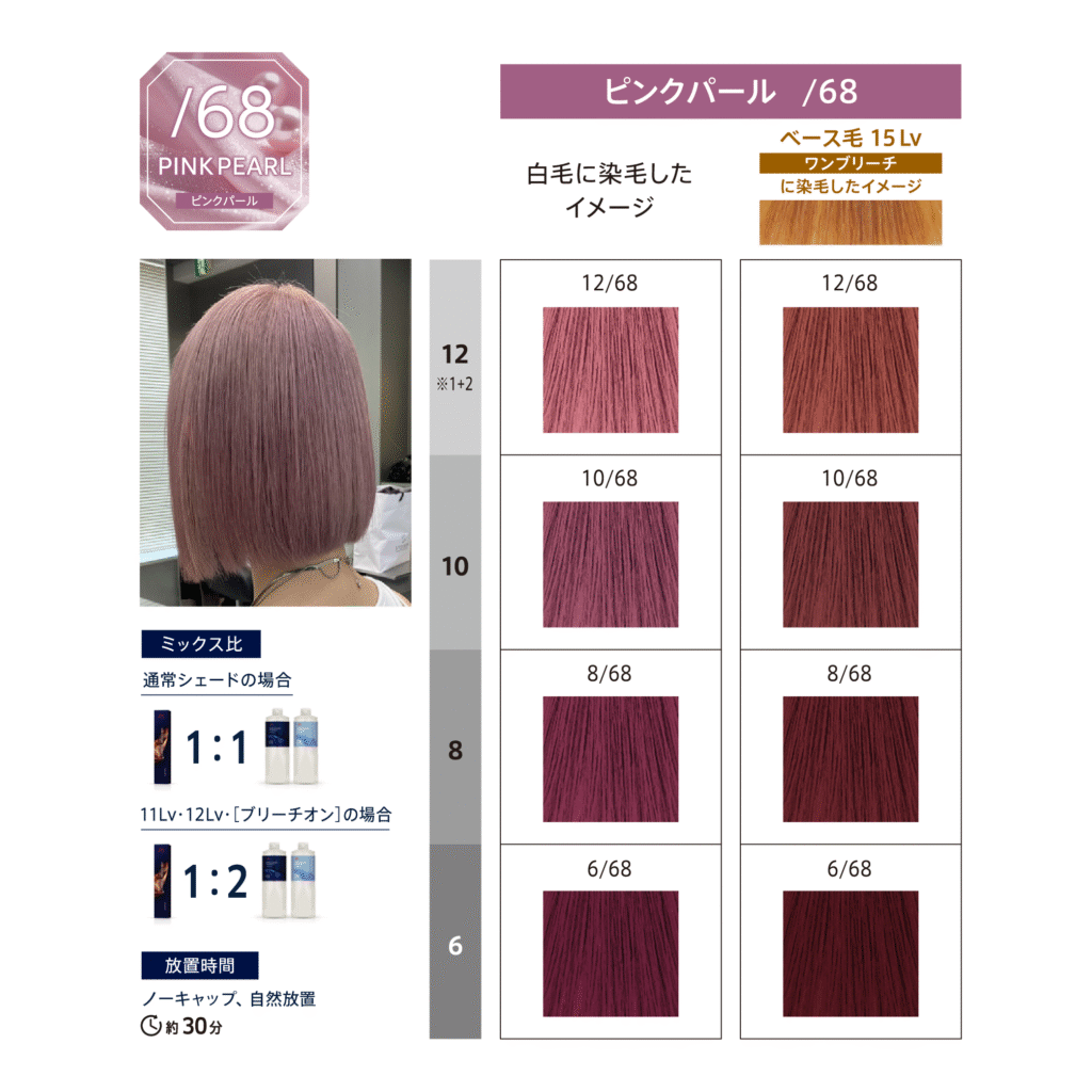 /68ピンクパールを補色として使用する時は、ベースに対して6/68を10%アレンジするのがおすすめ。