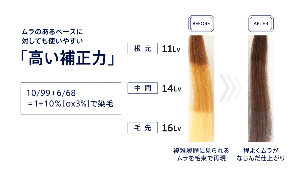 繰り返しカラーリングをしても髪に優しく、つややかな美しさが持続するよう配慮されており、グレイカラーとファッションカラーの垣根を越えて幅広い提案が可能です。